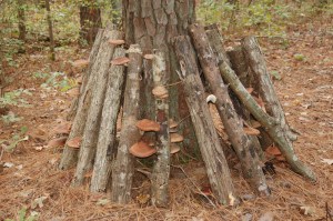 We’ll stack them in the woods against trees like this: