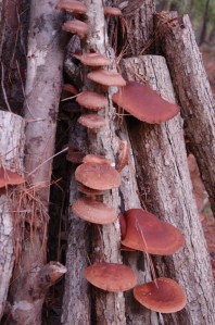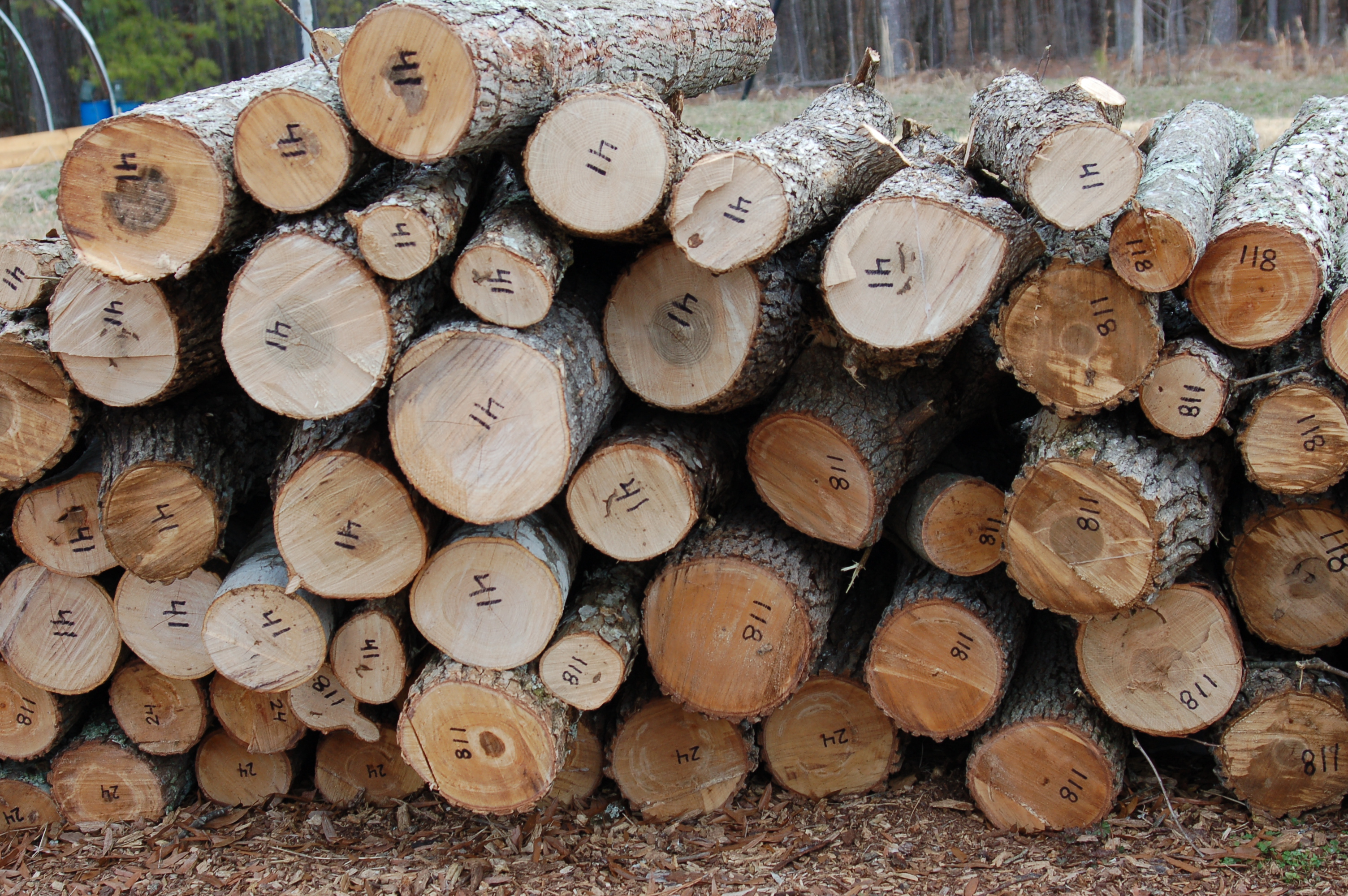 To experiment with varieties, we ordered 3 different kinds of Shiitakes. The numbers you see on the ends of the logs identify the particular strain so that we can know when we harvest which ones grew better here in our climate, which tastes better, etc.