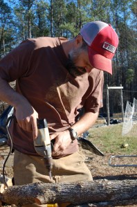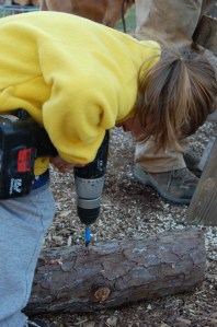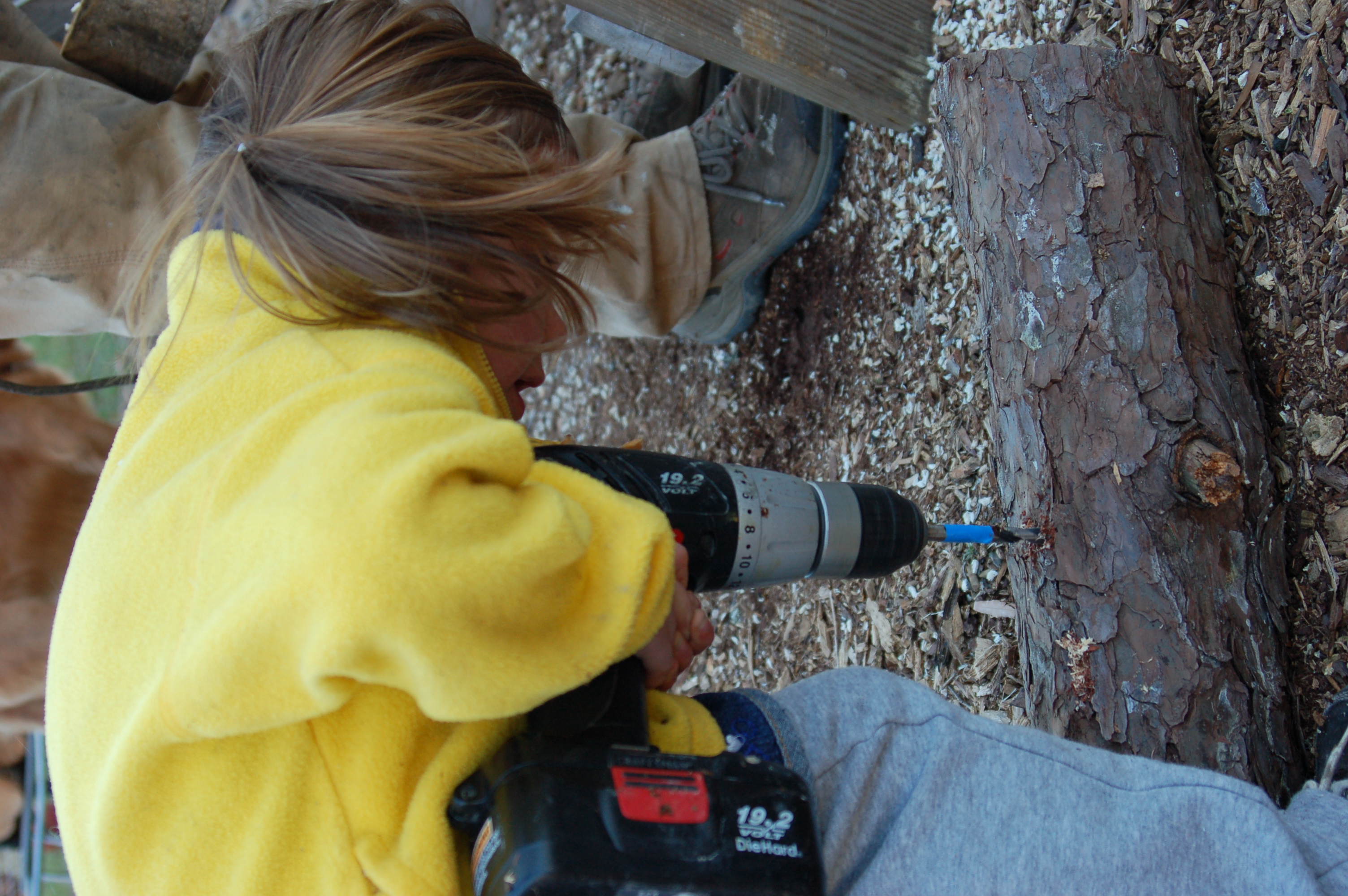 And then there was our littlest helper. She got her own logs and drill: