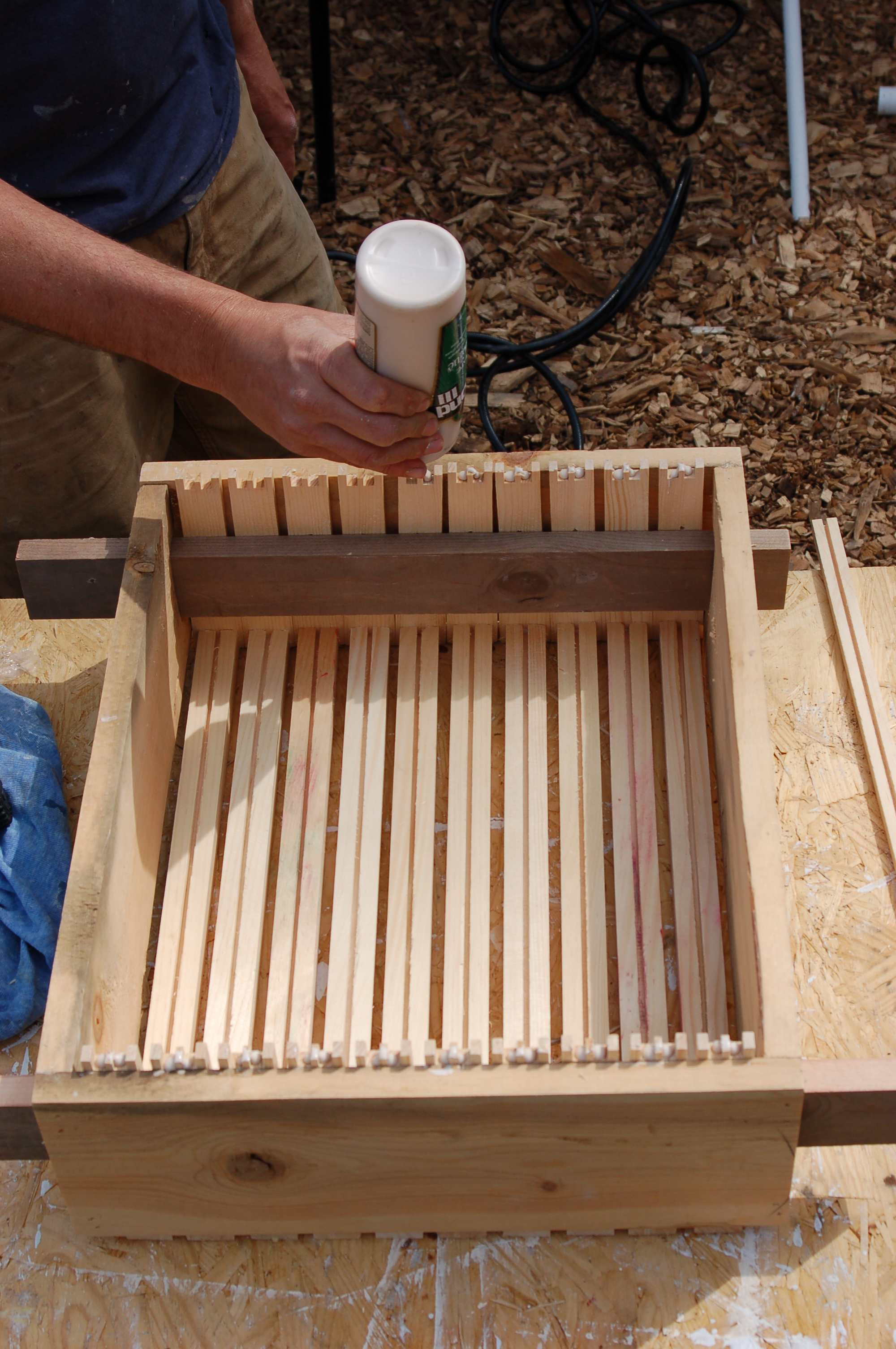 After we’d done 80% of them, my class had an equipment assembly lesson. Guess what: Everyone uses a jig to make assembly easier. A quick description to Dan and he whipped one up. He sure is handy.
