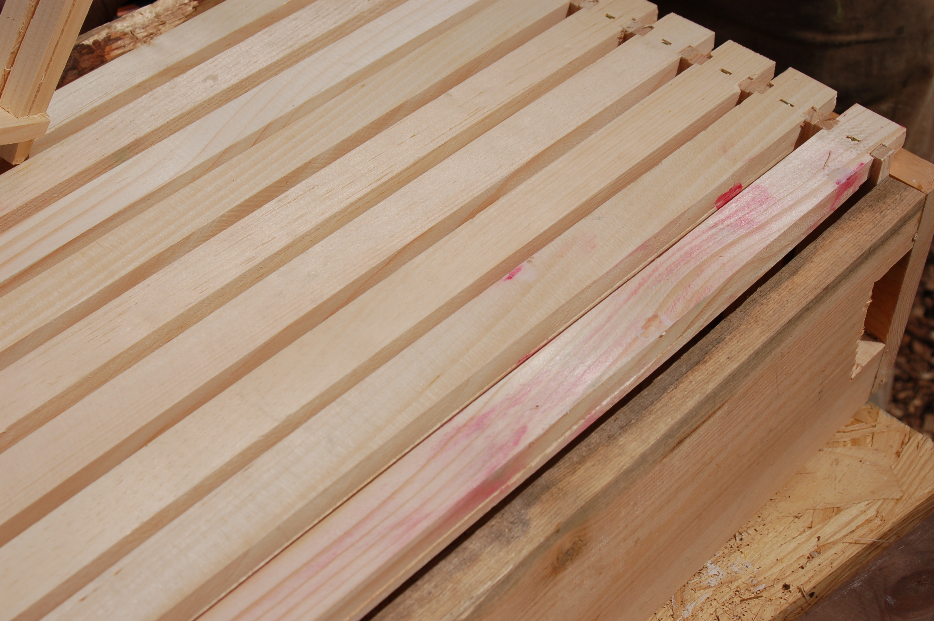Since no post is complete without showing the effects of children on farming, see below for the result when hive assembly day is also the children’s painting day: