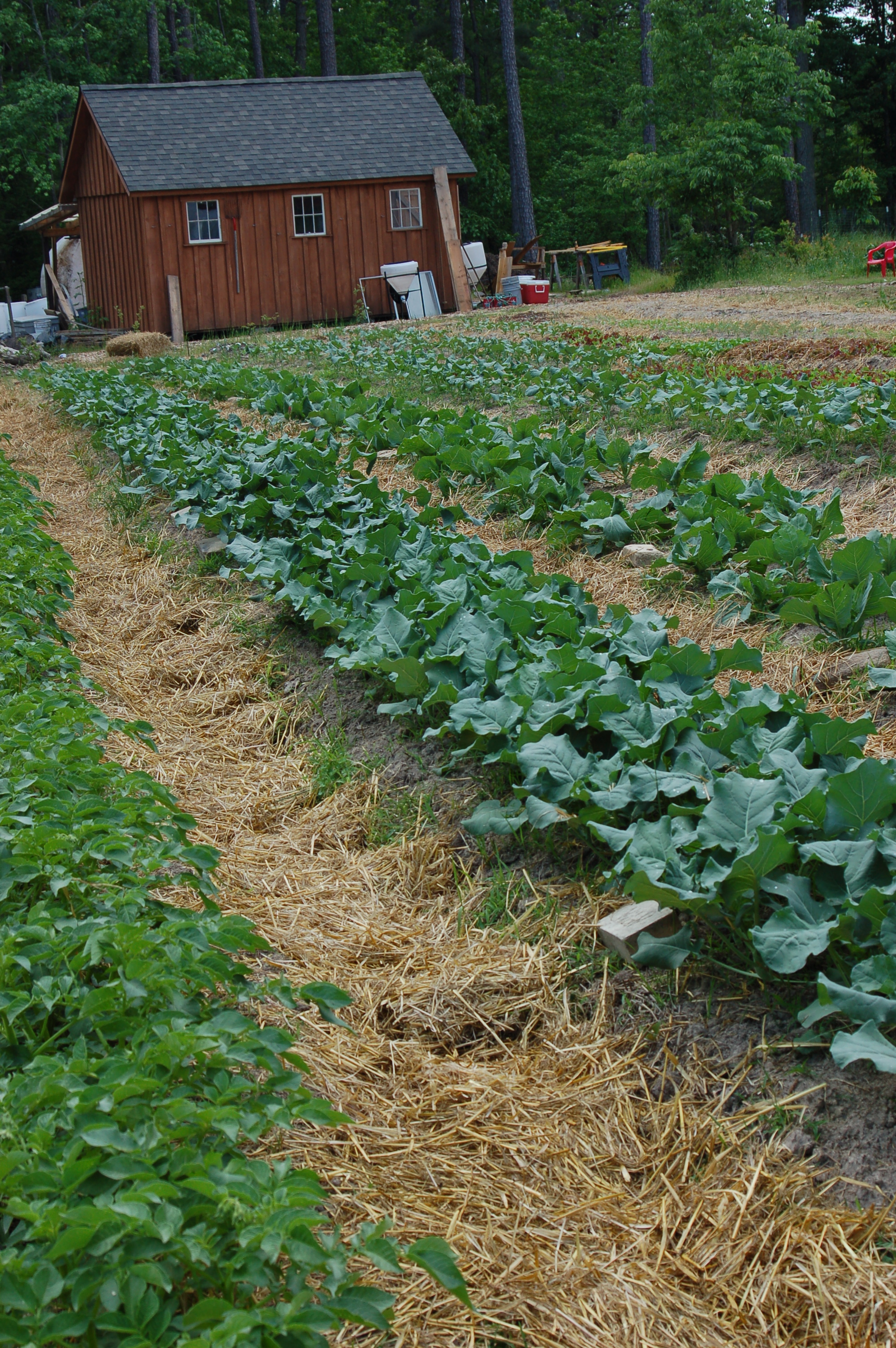 Right now it’s a redneck-cooler eye sore, but it works well, and will eventually look a little classy. Meanwhile, things have been growing well and we’ve enjoyed all the conversations with interested folks at our market booth. We won’t be at the South of the James market this weekend (we have a family event to attend) and my father and brother are being kind enough to take our produce to the Brandermill market. Stop by and tell them hello and enjoy some vegetables, flowers, and fruit (blueberries from Swift Creek Berry Farm at the Brandermill market this weekend!) that our lovely cooler has kept cold.