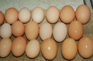 Eggs! Delicious, golden yolks from our chickens that move around our different fields, enjoying grass and fresh air.