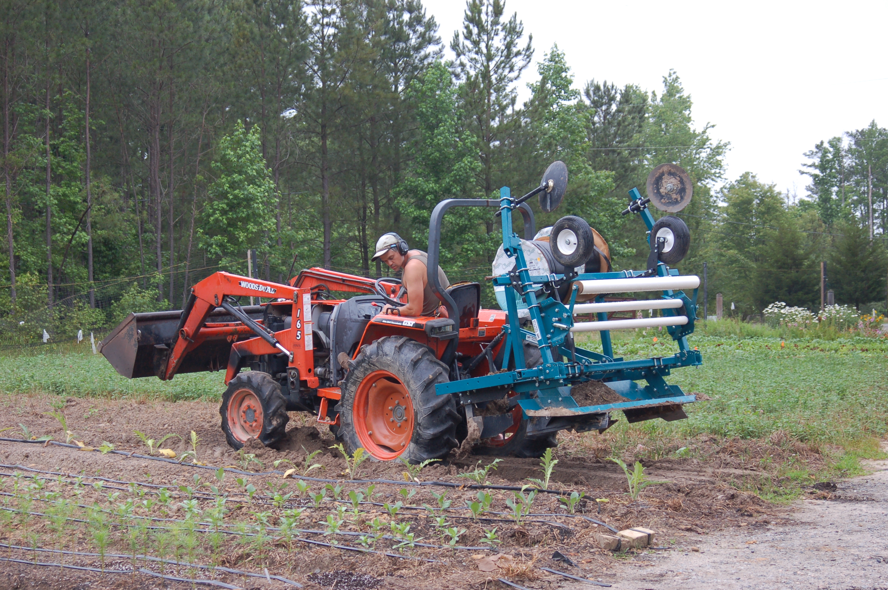 Last year we shared a photo here of a piece of equipment that Dan designed and put together to shape our beds. It is smart and handy, but limited in its capacity. This year we were ready to step it up a notch with a beefier and multi-faceted bed shaper. Check this out: