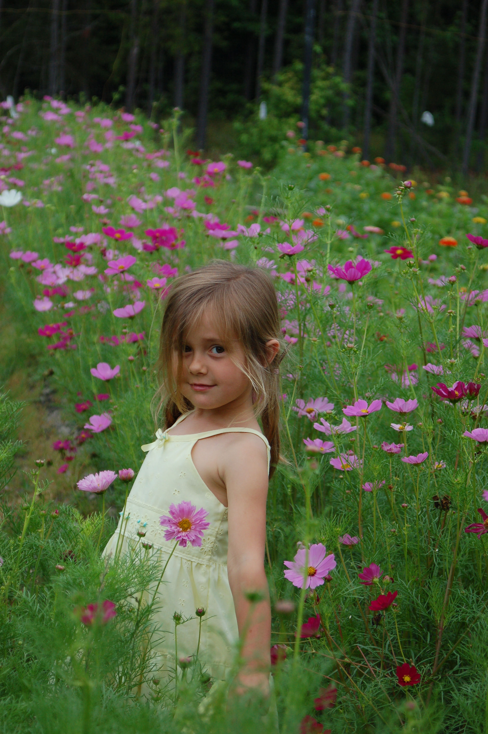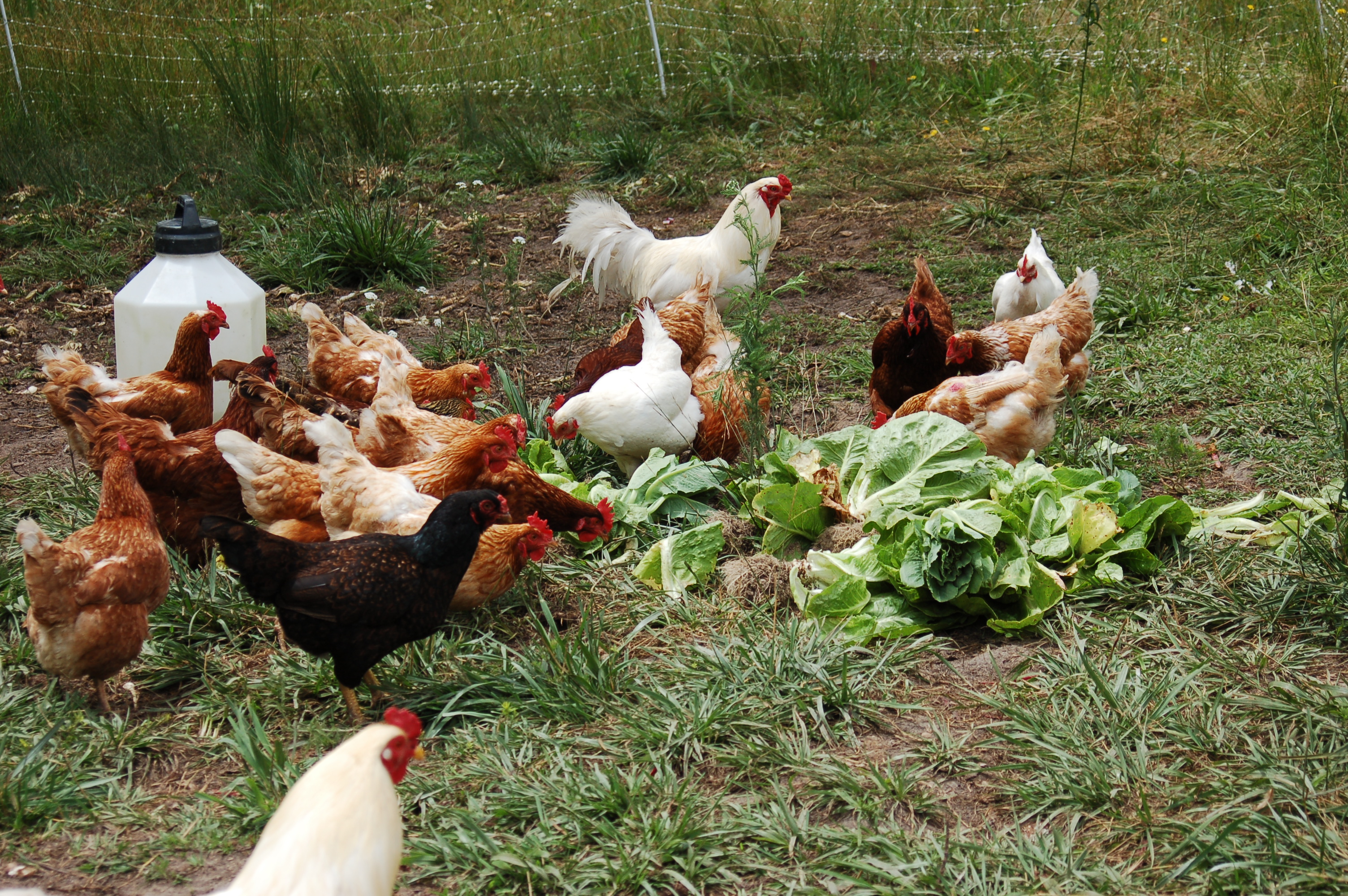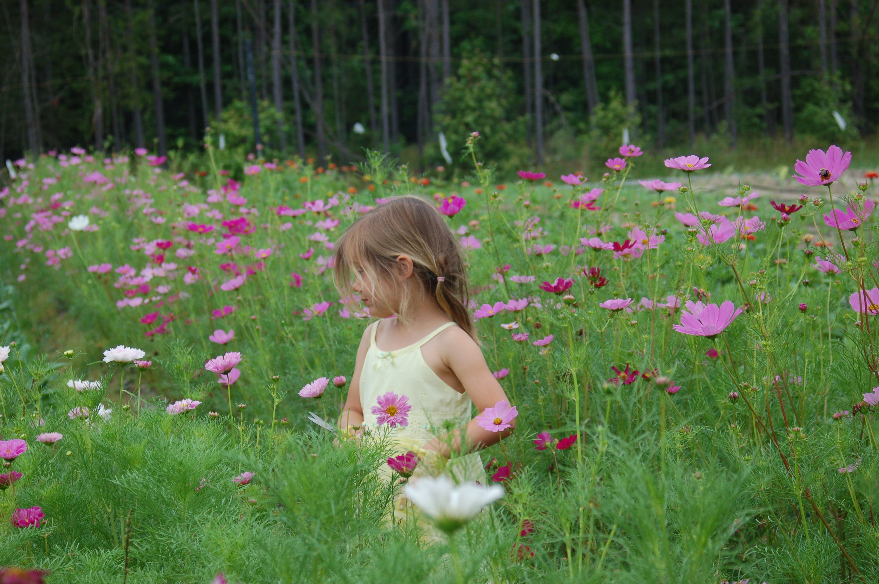 Chickens eating. Future salad growing. Adorable pre-schoolers cutting flowers.
