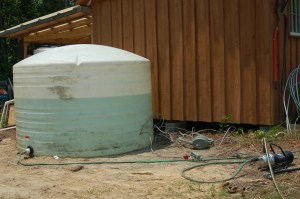 We’re going to try really hard to not just talk about how hot and dry it is! There is more to tell than that about what’s going on around here, fortunately. Making the best of the well that we currently have (at 2 gpm, it’s producing just a fraction of the water we need), Dan set up this small-ish cistern we had, pumping water from the well to it, and pumping water out of the cistern into the fields. This strategy provides a greater gpm (gallons per minute) that is needed to be able to water enough sections of a field at one time. At night, no water goes out into the fields, allowing the cistern to re-fill. This, along with sadly but strategically letting some crops die by not watering them, is how we are getting by for now. (fyi – All pictures below were taken today.)