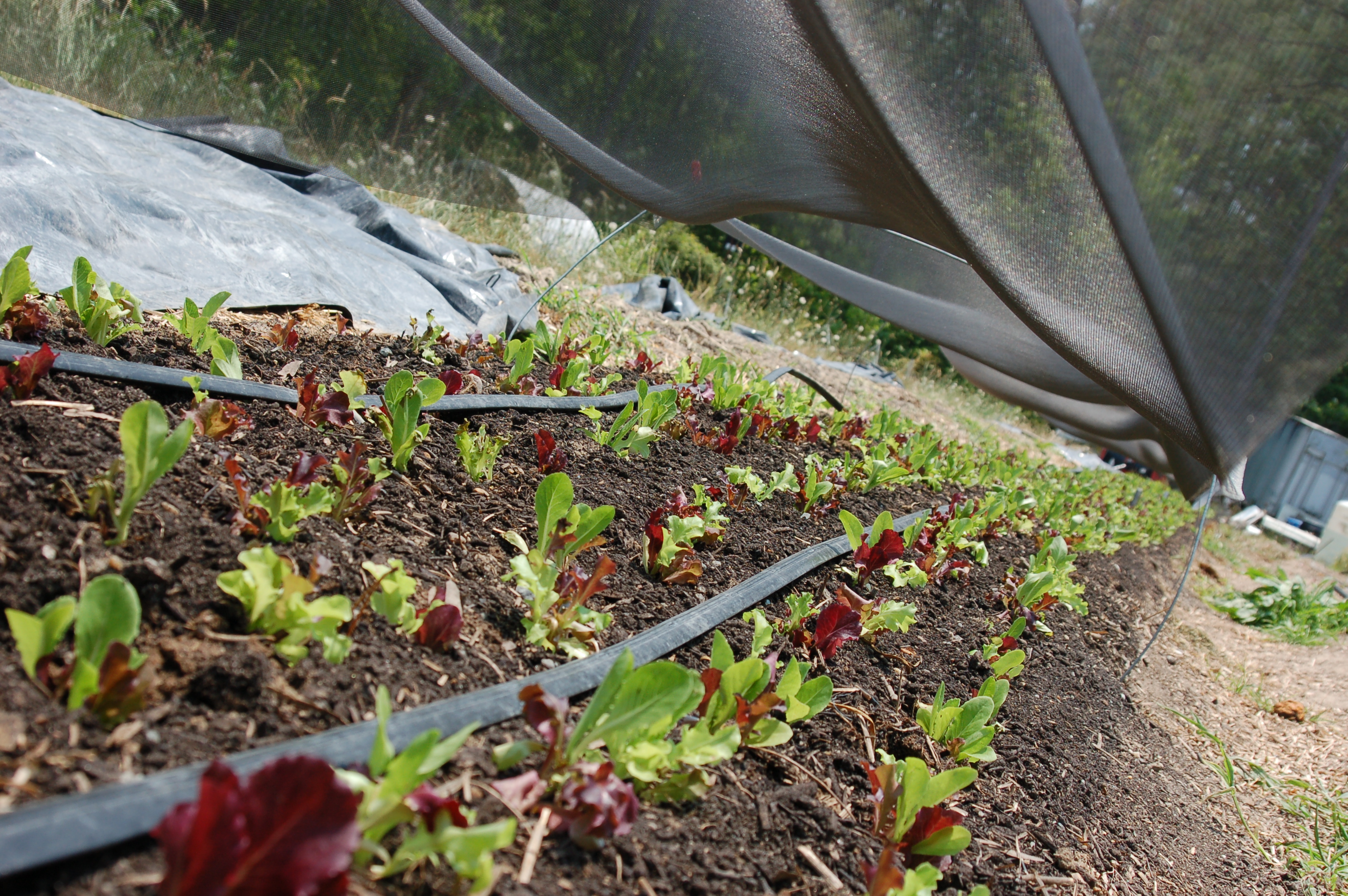 Moving into this hottest part of the summer, we are now shading the salad mix to allow it to grow in this heat that it doesn’t prefer. We plant salad mix every week all season long, and this technique helps it to grow this time of year. Yum! These salads, now topped with the incredible fruits of mid-summer, are the staple of our daily eating.