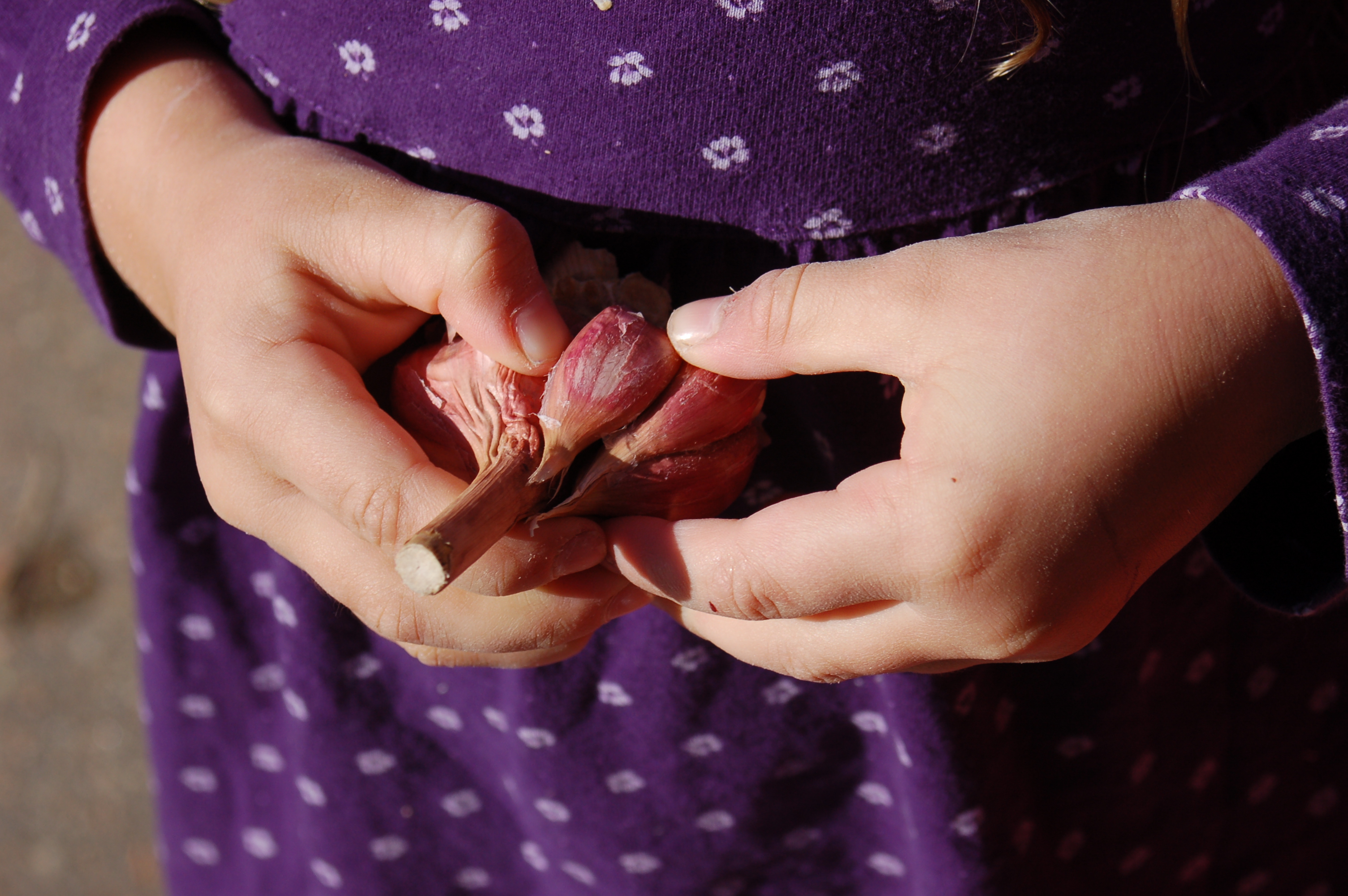 But thoughts are on next year as well. Garlic bulbs bought for seed have been split up, by large hands and small.