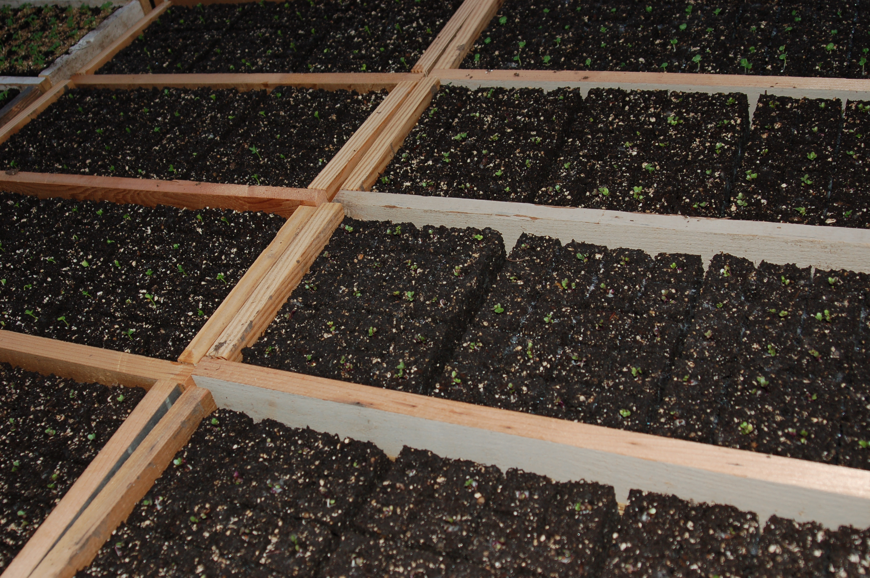 In past years we have used plastic trays for all of our seeding. We’re continuing to use some of these trays this year, especially for the plants that we make available to you for purchasing as starts for your garden. (Details below.)