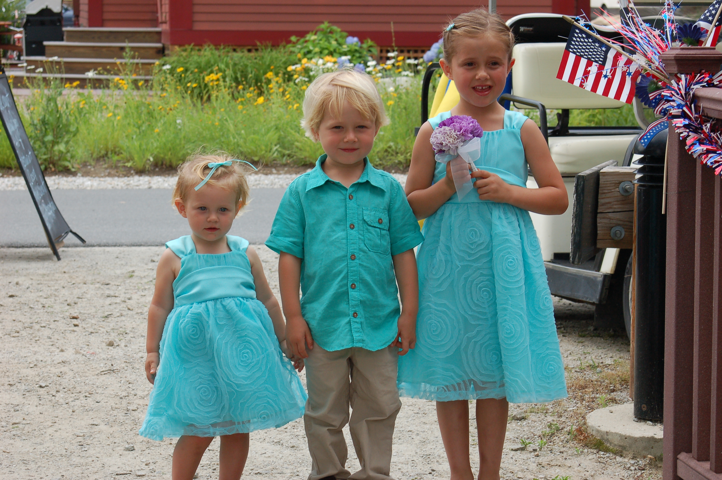 In other words, this is the time of year when everything is happening. In the fall, winter, and spring there are items removed from that list, or the tasks are less demanding. But it is all in full swing right now, and therefore very tough to leave. But when our kids are to be three precious dolls in a wedding ceremony, we pack up and head out.
