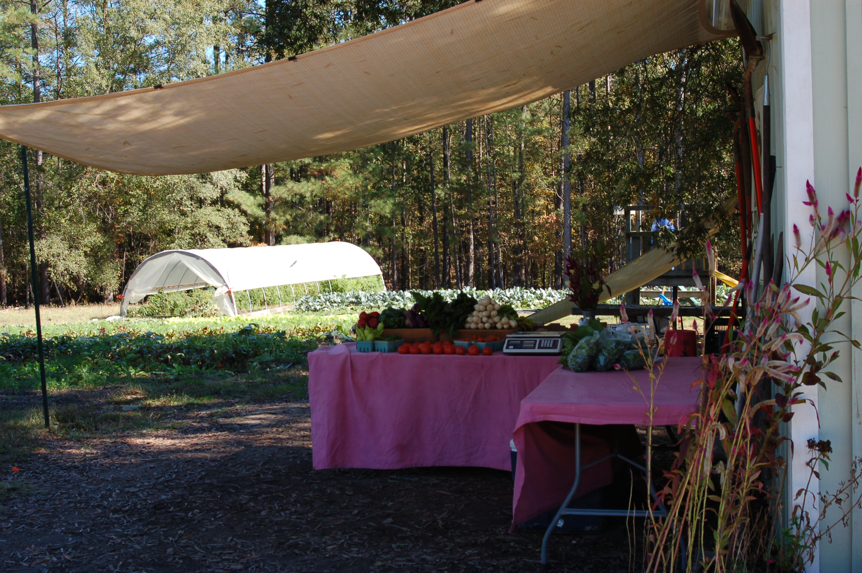 This is a temporary set up that we’ll use until our barn is constructed (planned for this winter). Next spring we plan to launch our Farm Stand in a permanent structure, protected from the weather, which will also house our Farmstead Bakery, providing the area’s most delicious bread to enjoy with our veggies. Stay tuned here on our blog (and on our Facebook page) for all updates about the In-the-Rough Farm Stand and the progress on the barn/farmstand/bakery structure.