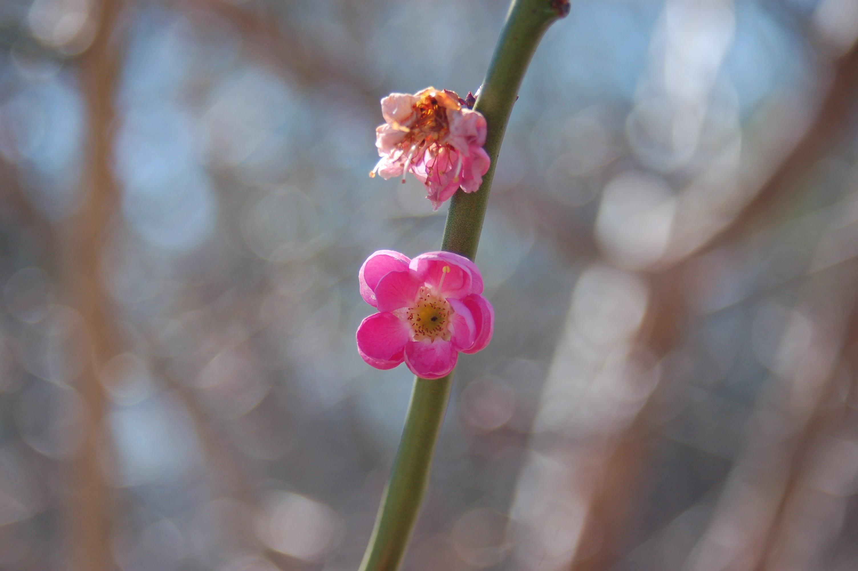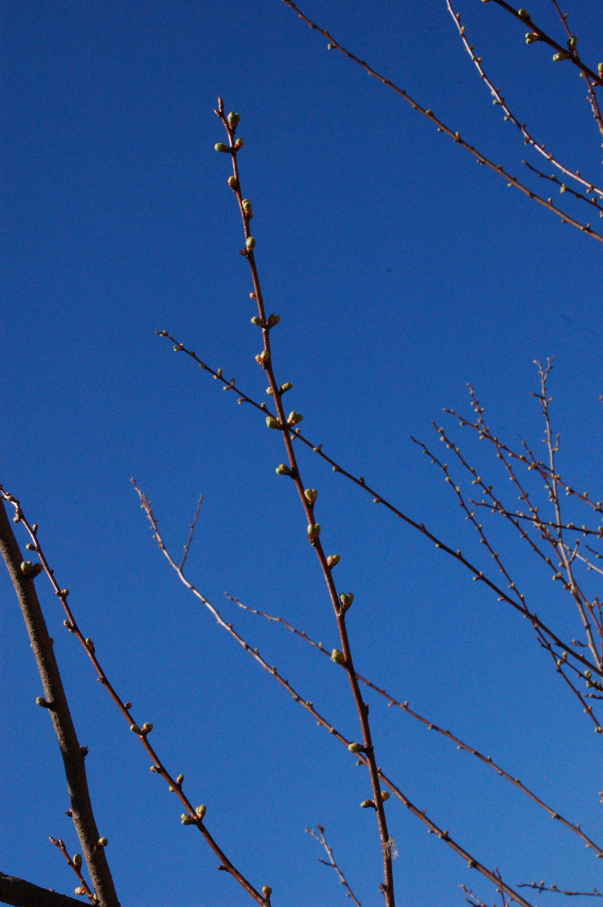 If we lived in a warmer clime, this flower would lead to an apricot (Ume). But these poor dears insist on blooming so early that they always get killed off by cold. We planted this tree knowing this, but also knowing the value of having these gorgeous pink flowers around in February and March. They stand their own, not needing justification by later fruit.