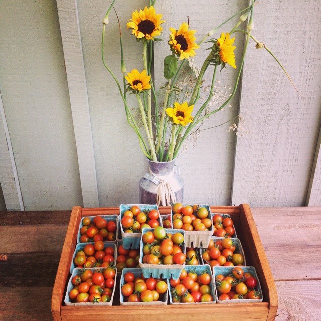 On this little farm, this year, the official start of summer means that we are suddenly swimming in tomatoes. Just like that, they have come rolling in off the vine this week. Happy Summer! We have been working hard on these sweet red fruits since January. No kidding. And they are delicious.