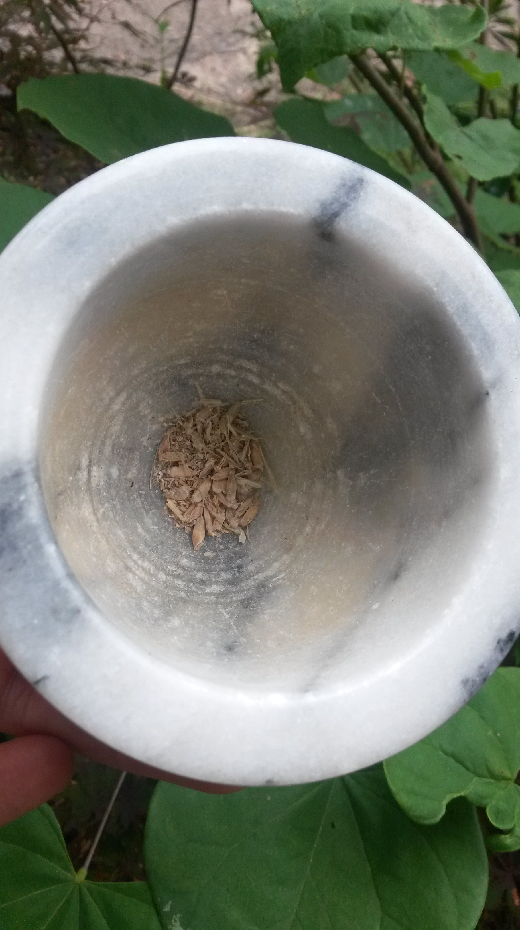 Retrieving the rye from where they had it drying, they got some rye berries. They separated them from the chaff (correct term? We are not grain growers…). They ground them with the mortar and pestle, and they have this scant teaspoon of…something close to rye flour. They feel like they can do anything now! It’s something to celebrate.
