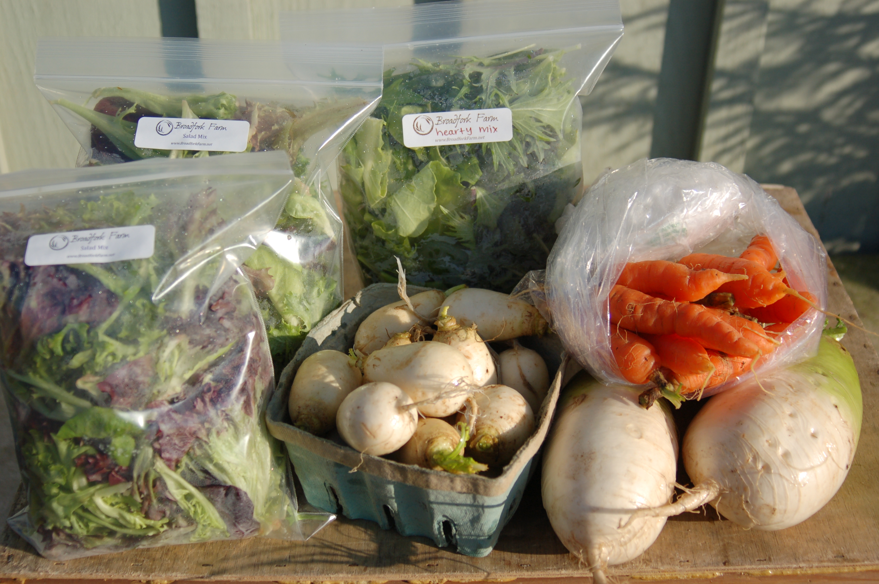Salad green mix, lettuces, hearty greens (kale, collards, chard, asian greens, etc), arugula, leeks, radish, beets, carrots, broccoli, broccoli raab, turnips, herbs, fennel, etc.